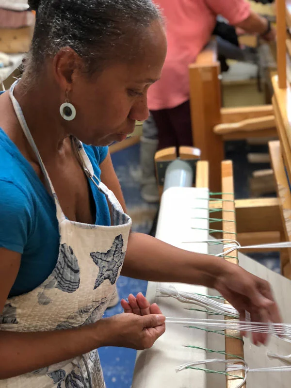 In response to the 2009 economic crisis and our clients’ struggles to secure stable employment to support their families, Initiative founded re:loom—weaving a better life, a low-barrier employment program for homeless and low-income individuals in DeKalb County. re:loom provides immediate full-time work with benefits for clients in our homeless services program, refugees from the nearby Clarkston community, and other area residents in need. At re:loom, employees are trained to weave on traditional floor looms, using donated fabrics to produce new home décor and fashion items for retail sale.